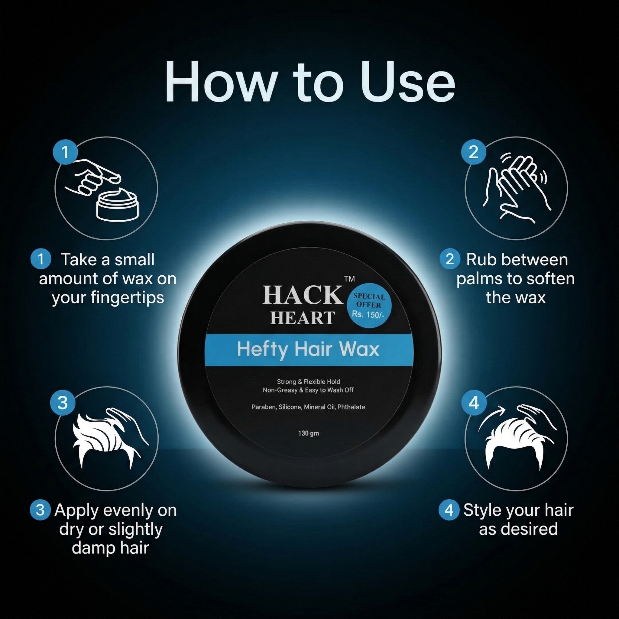 Hack Heart Hefty Hair Wax offers a strong yet flexible hold to keep your hairstyle in place all day. Its non-greasy formula ensures a natural look without any sticky residue. Easy to apply and wash off, it gives you effortless styling with a smooth finish. Perfect for creating both casual and