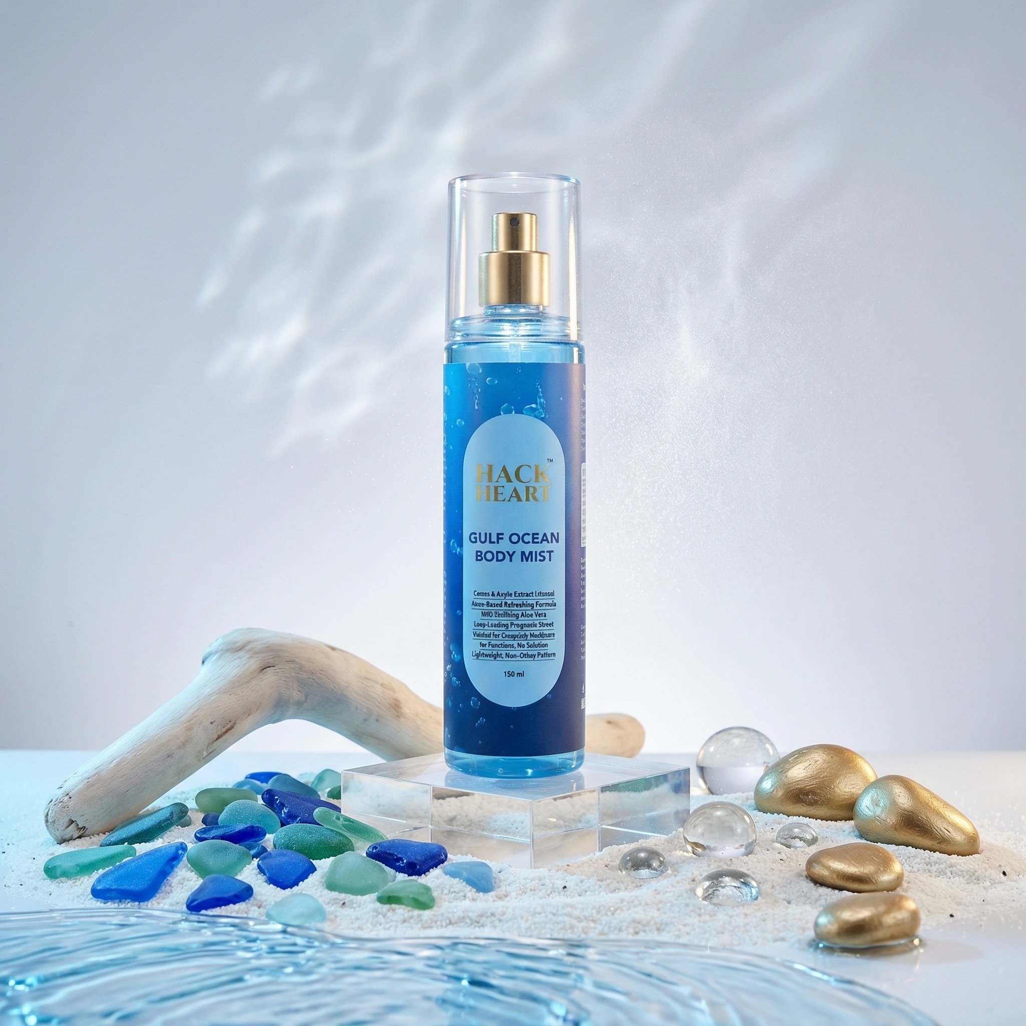Hack Heart Gulf Ocean Body Mist delivers a refreshing burst of ocean-inspired fragrance that keeps you feeling cool and energized all day. Infused with a light, aquatic scent, it revitalizes your senses and leaves a clean, fresh vibe. The quick-drying, non-sticky formula is perfect for everyday